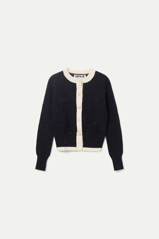 Sold outBlack herringbone knit sweater