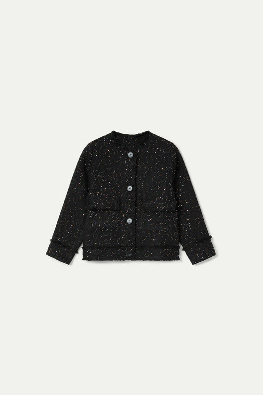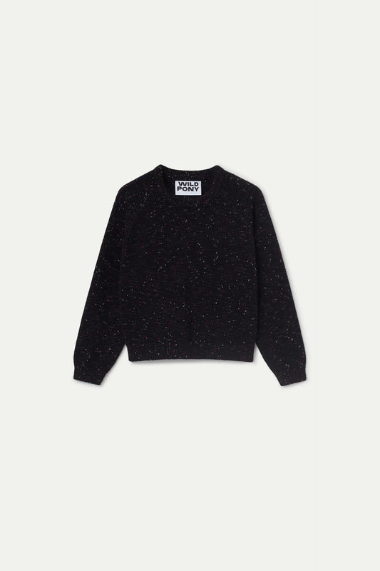 Sold outBlack mottled knit jersey