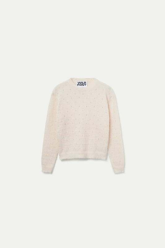 Sold outWhite round neck knitted sweater