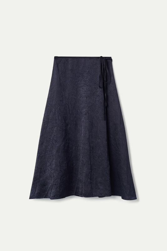 Flowing midi skirt in blue crumpled satin