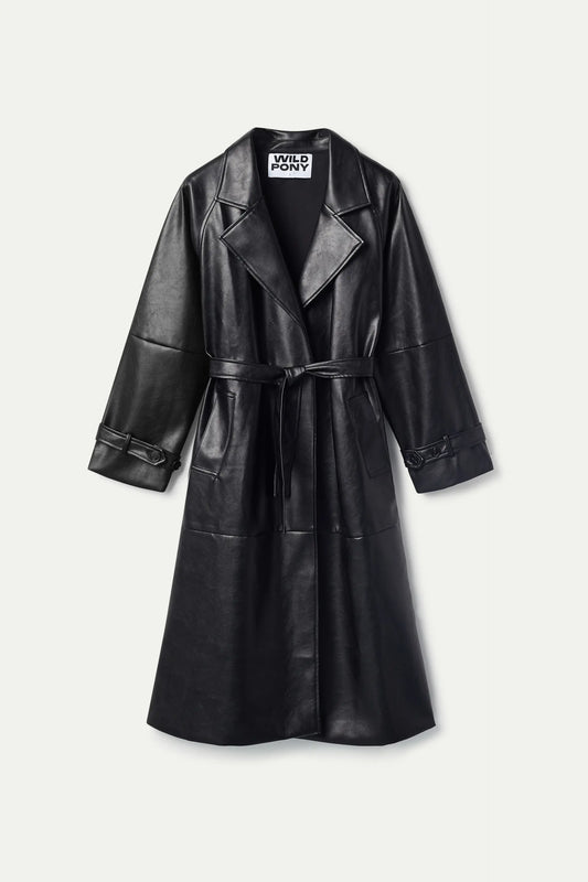 Sold outBlack faux leather trench coat