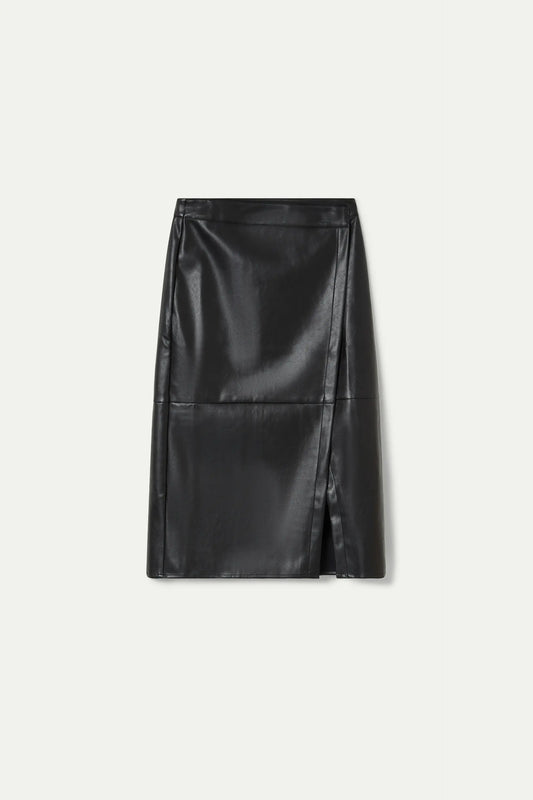 Sold outBlack faux leather midi skirt