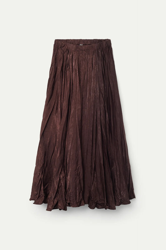 Sold outLong brown crumpled satin skirt