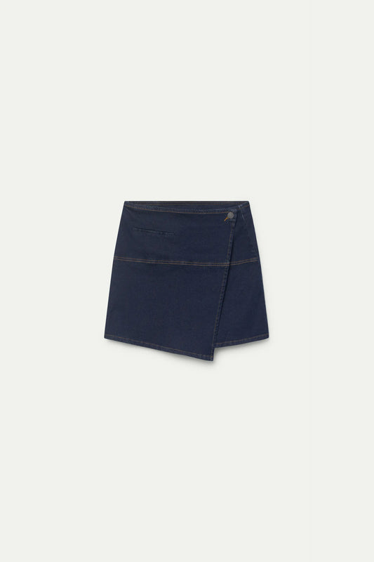 Blue denim midi skirt