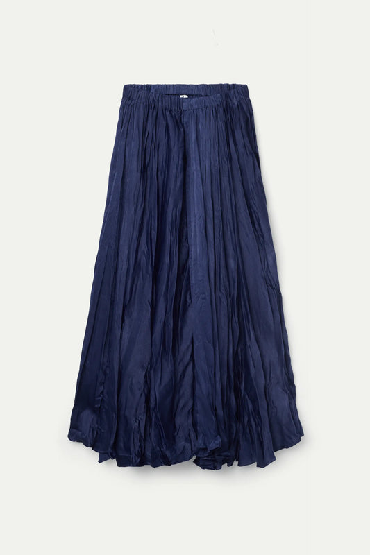 Sold outLong skirt in blue crumpled satin