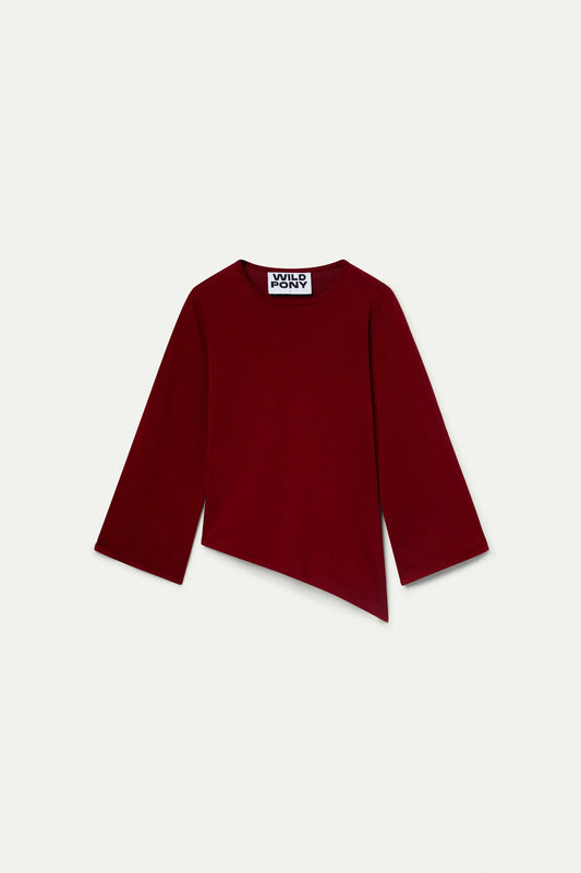 Sold outBurgundy asymmetrical cut jersey