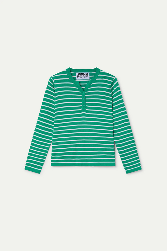 Sold outWhite and green striped knit sweater