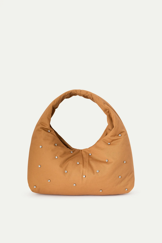 Sold outCamel shoulder bag with rhinestones