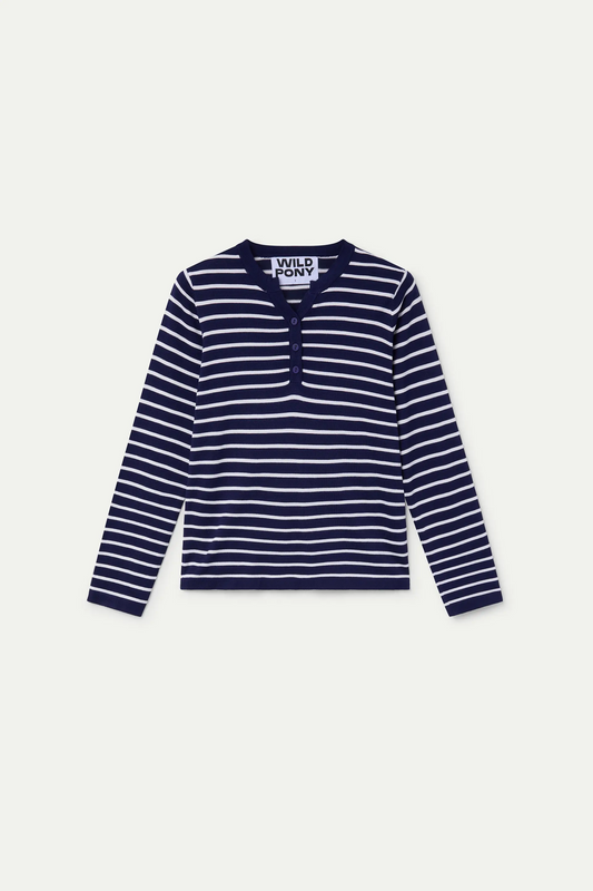 White and navy blue striped knit sweater