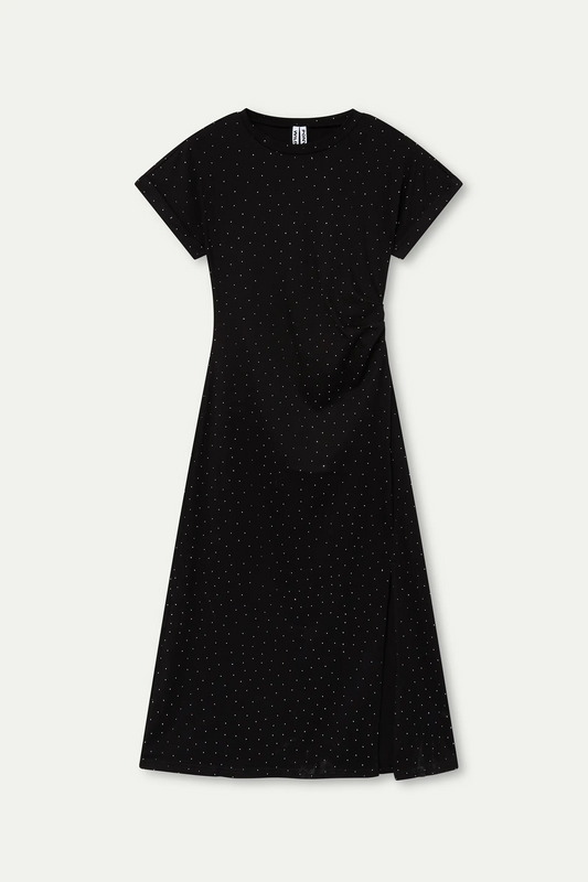 Black midi dress with appliqués, 100% cotton