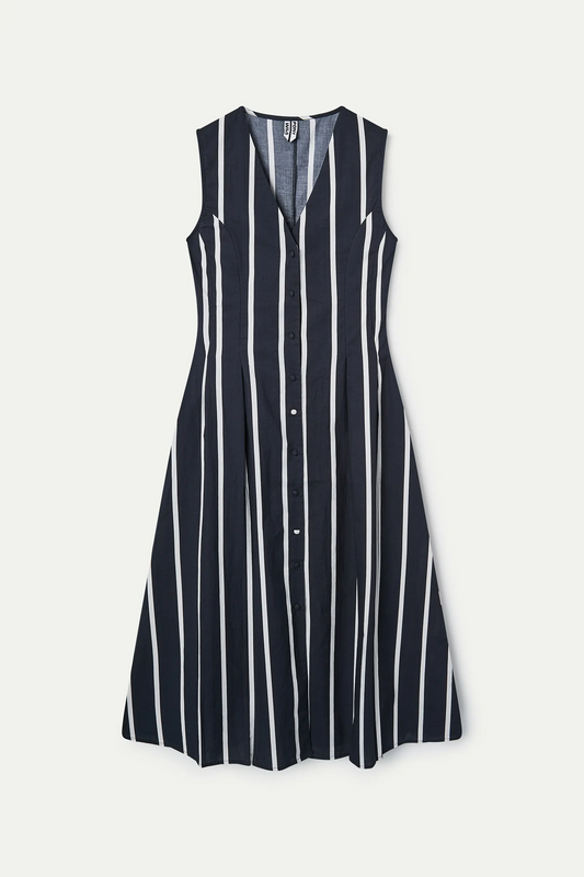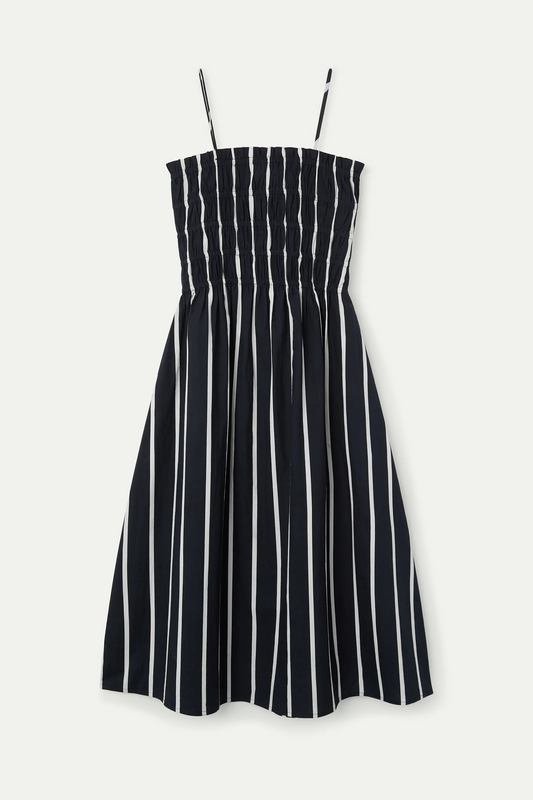 black and white striped knit midi dress