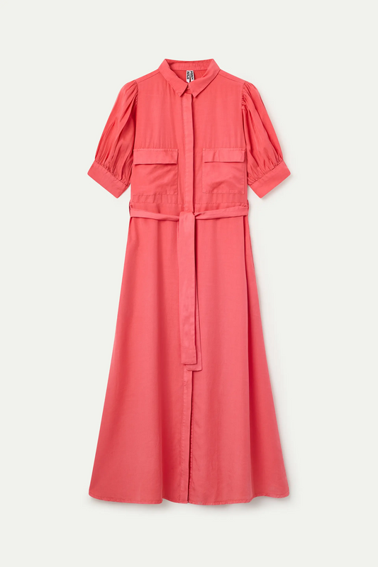 Coral midi shirt dress