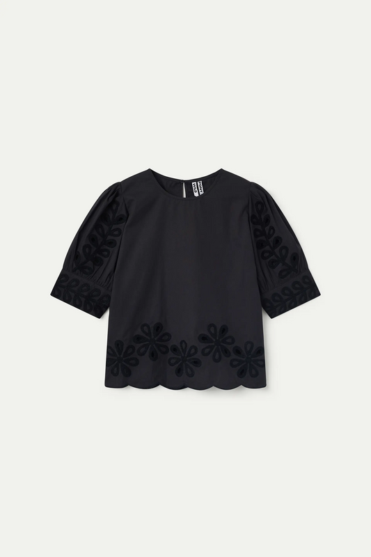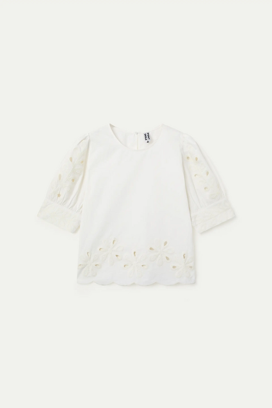 Top made of 100% off-white cotton with floral embroidery