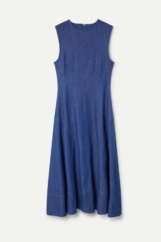 Blue denim midi dress