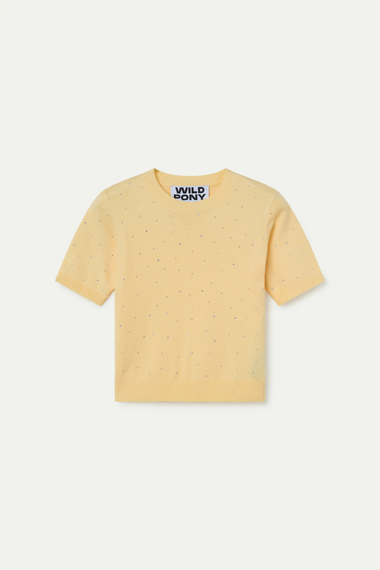Yellow knit top with rhinestone detail