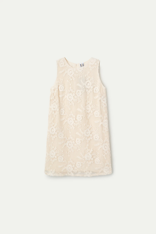 Short dress, 100% cotton, crochet, off-white
