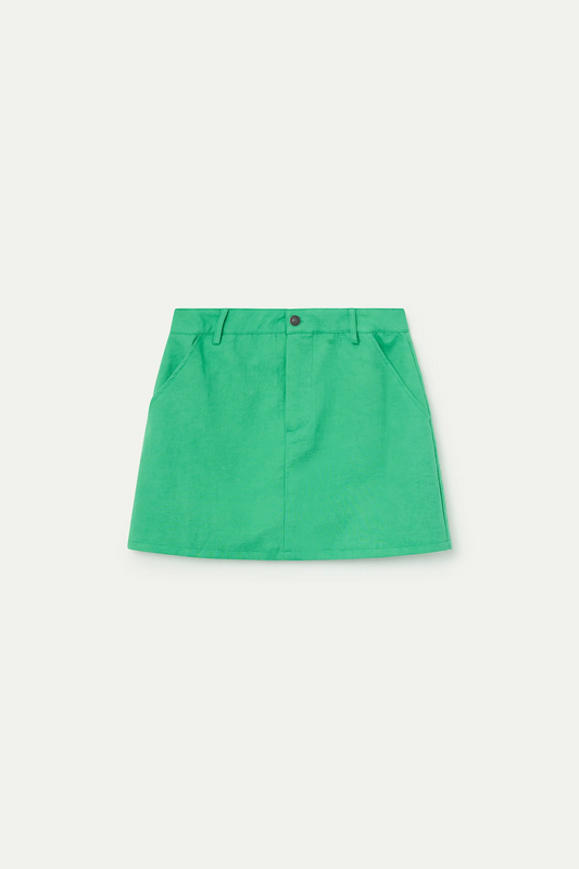 Green linen blend short skirt