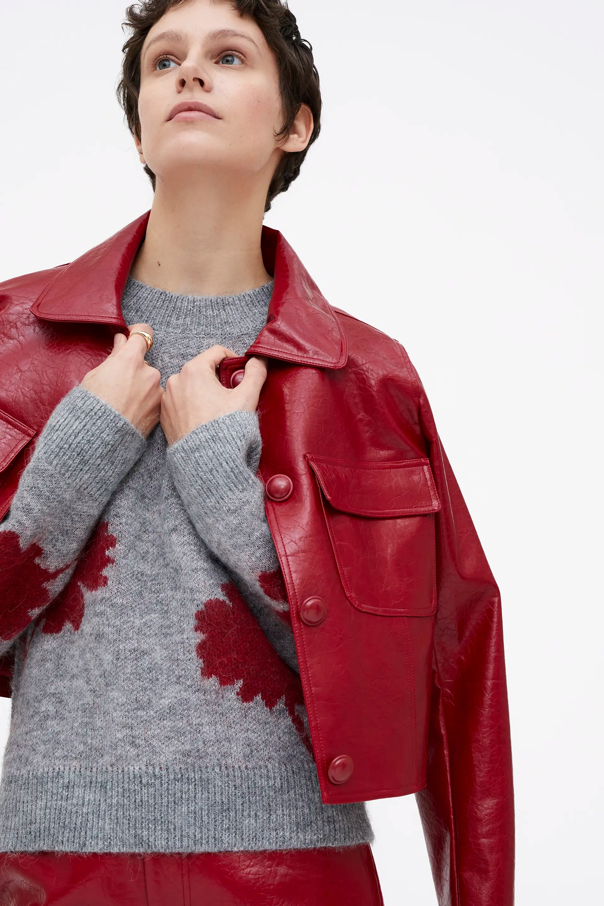 Doria printed jacquard sweater with a round neck and long sleeves with slightly dropped shoulders.