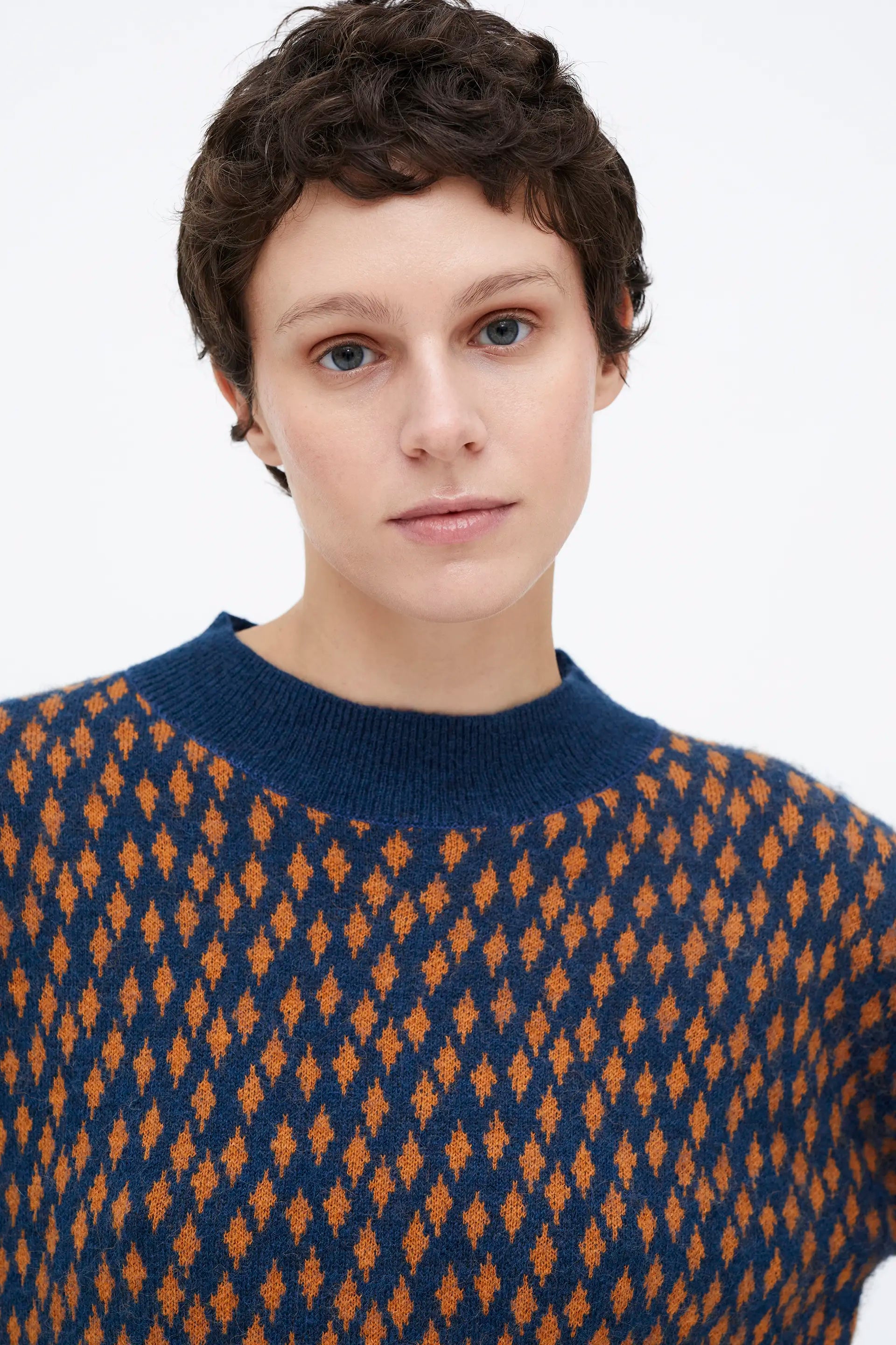 Rain print jacquard sweater. Featuring a round neck and long sleeves with slightly dropped shoulders.