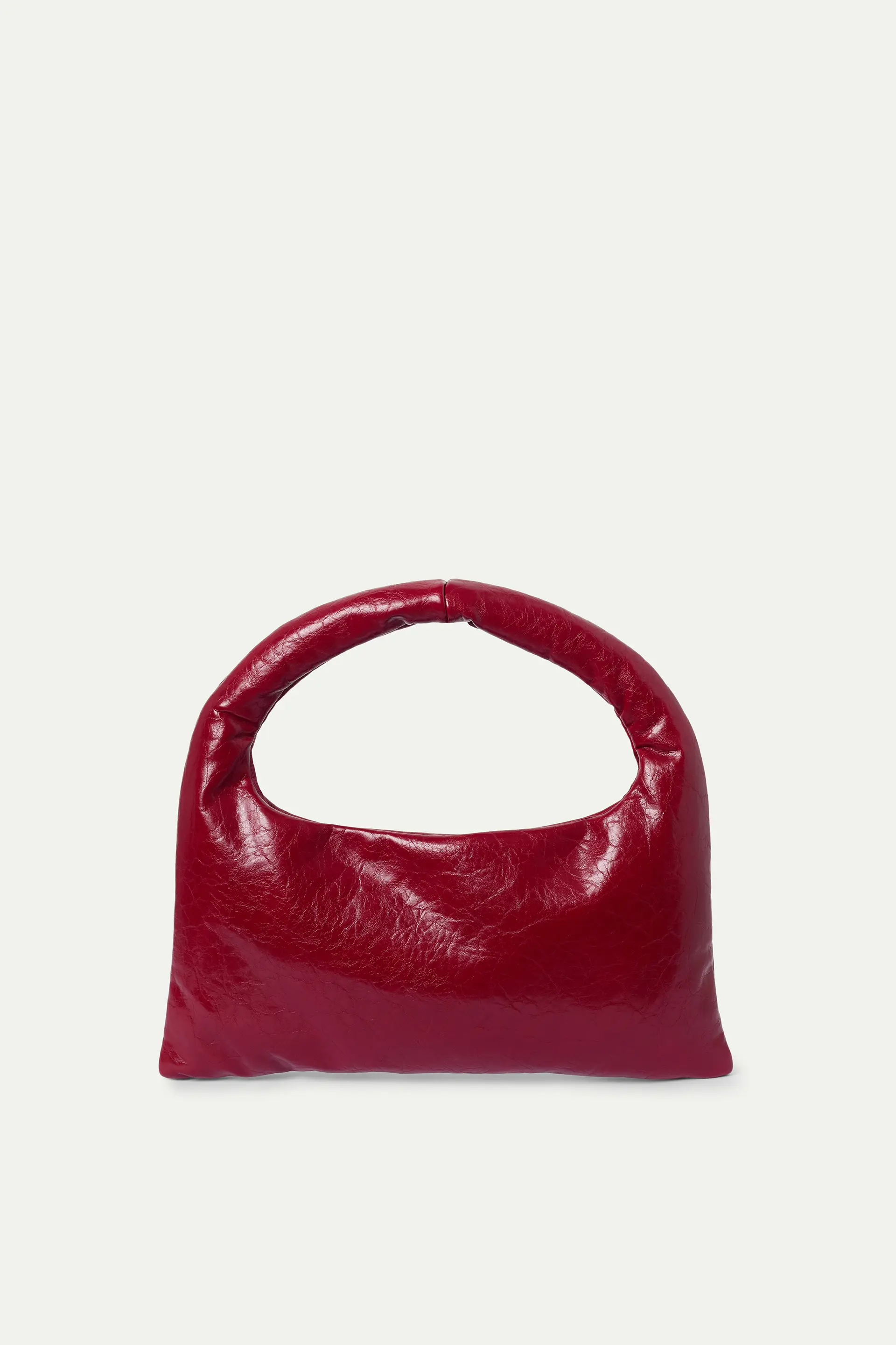Bolso hombro en tejido efecto piel de color rojo. Con asa larga de hombro. Cierre mediante solapa con imán oculto.