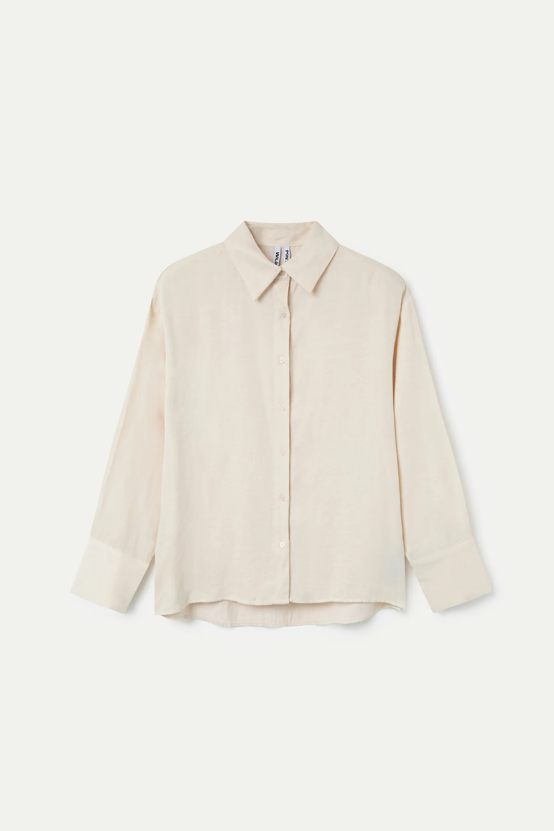 Camisa de color blanco crepé satinado. Con cuello solapa y manga larga terminada en puño doble botón. Cierre frontal con botones.