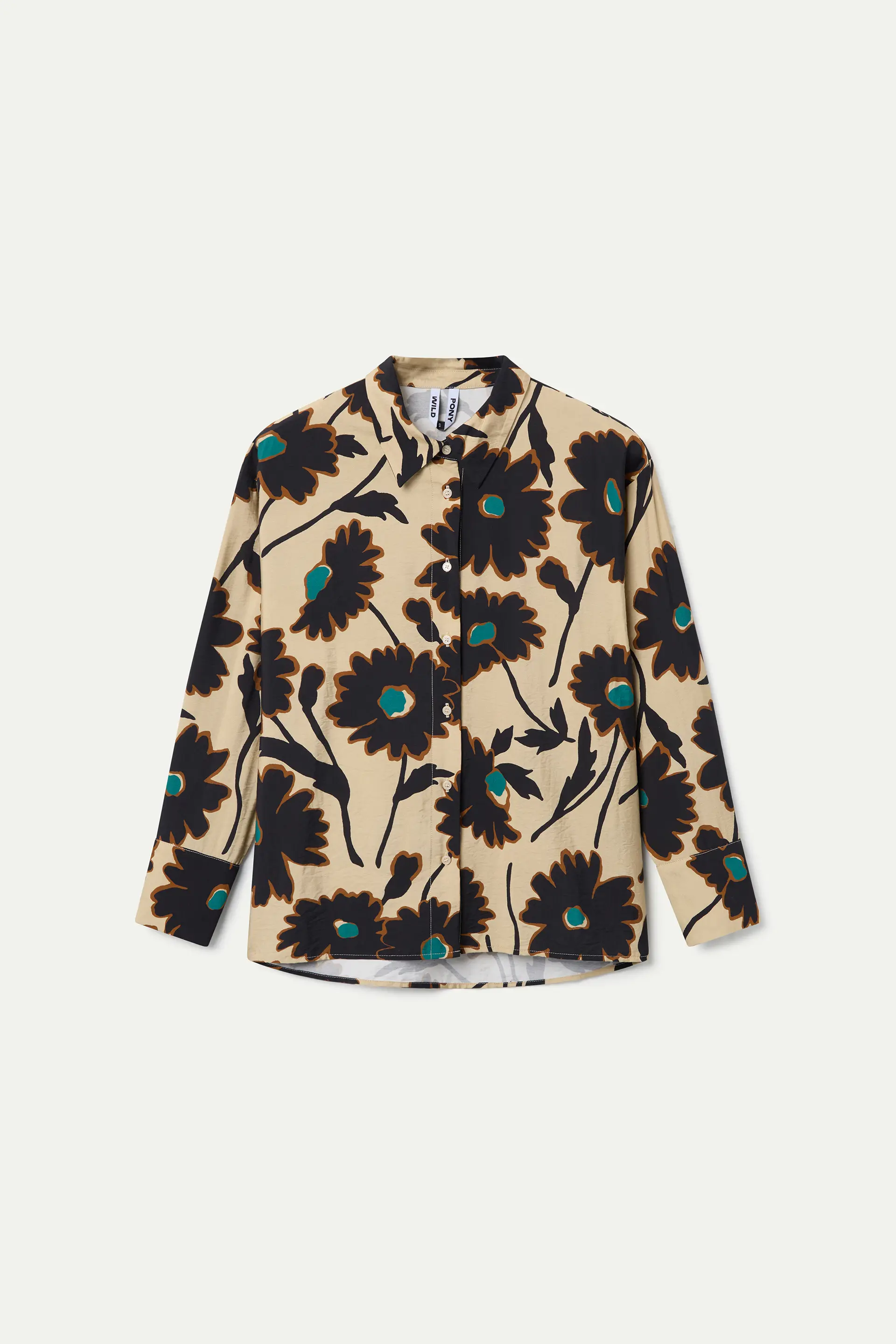 Camisa floral con estampado Giardina. Con cuello solapa y manga larga terminada en puño con doble botón.Cierre frontal con botones.