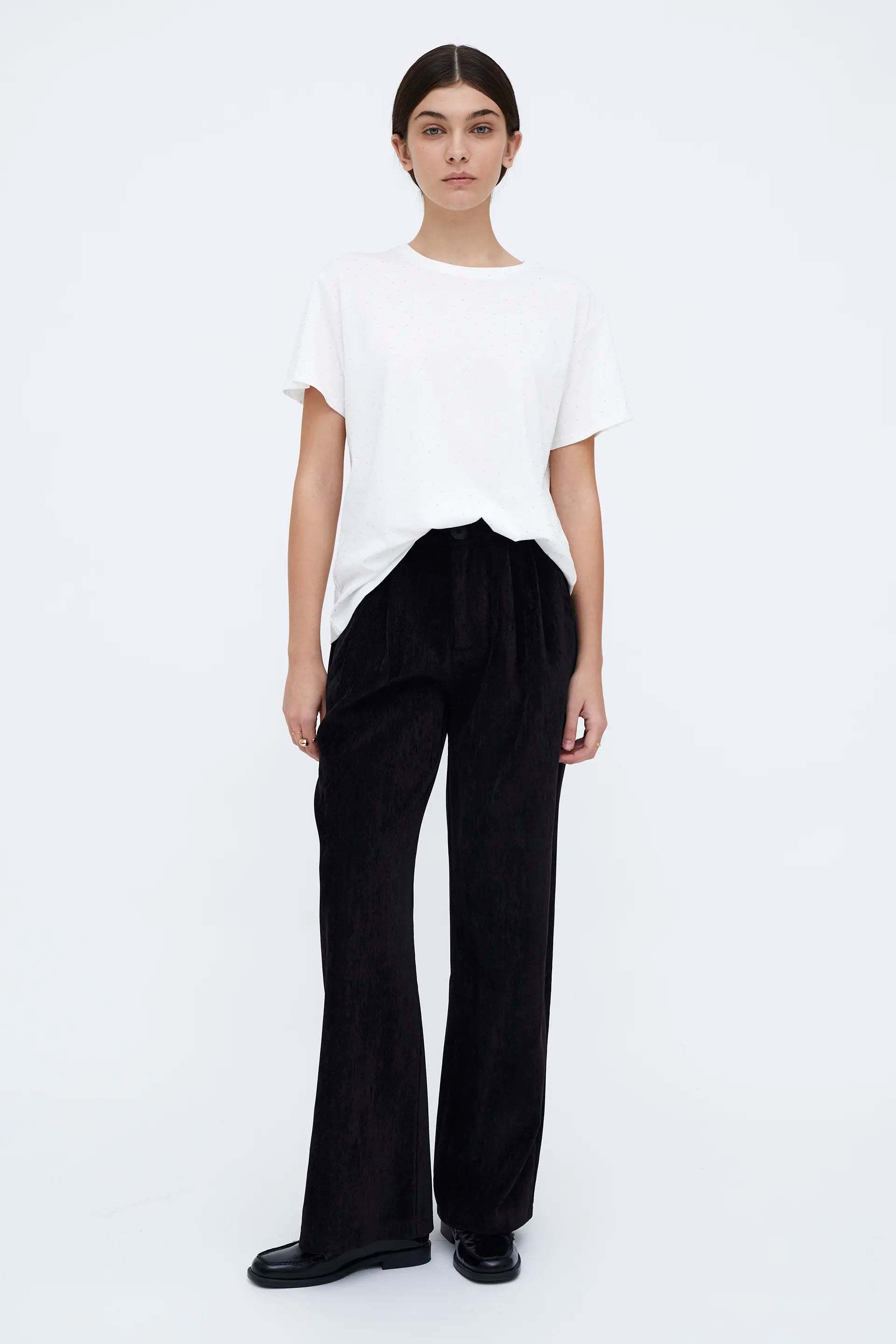 Camiseta de color blanco 100% algodón con apliques plateados. Cuello redondo y manga corta.