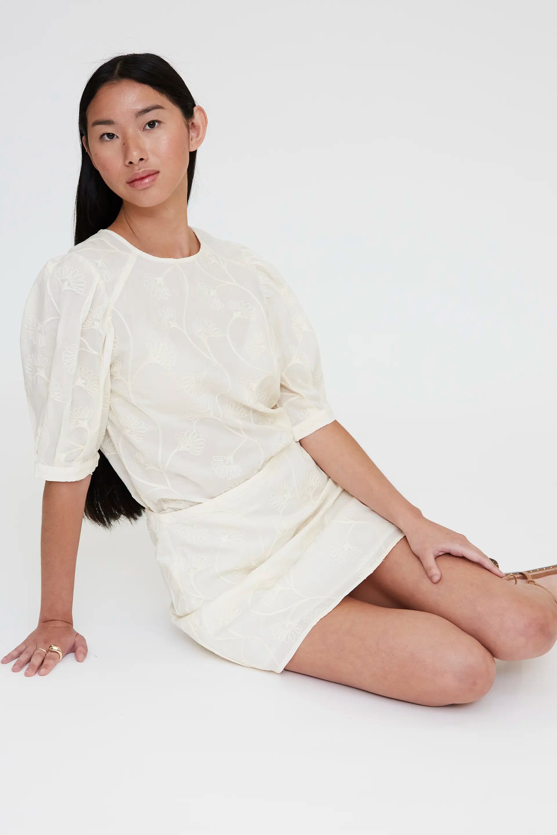 Falda corta 100% algodón blanco roto