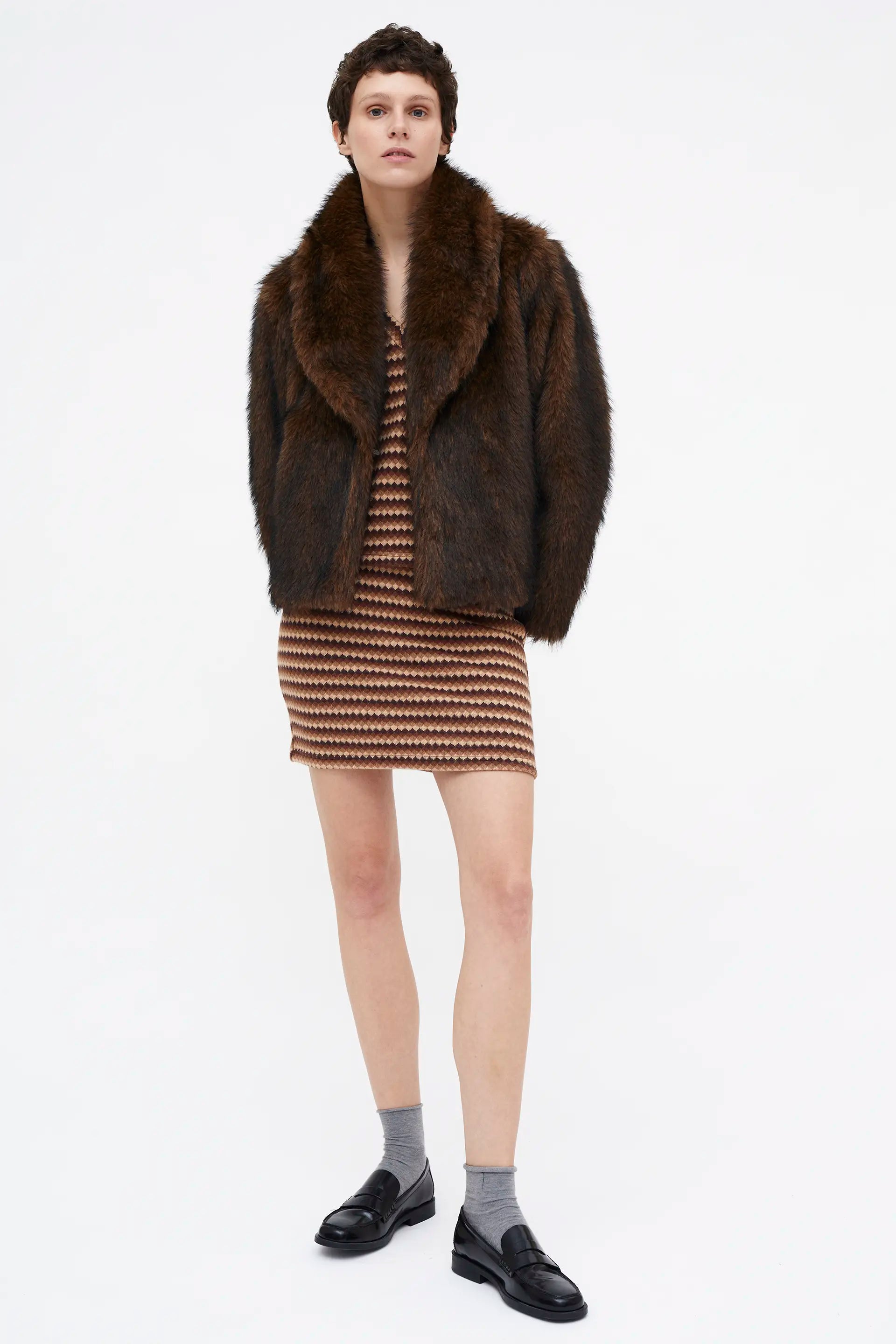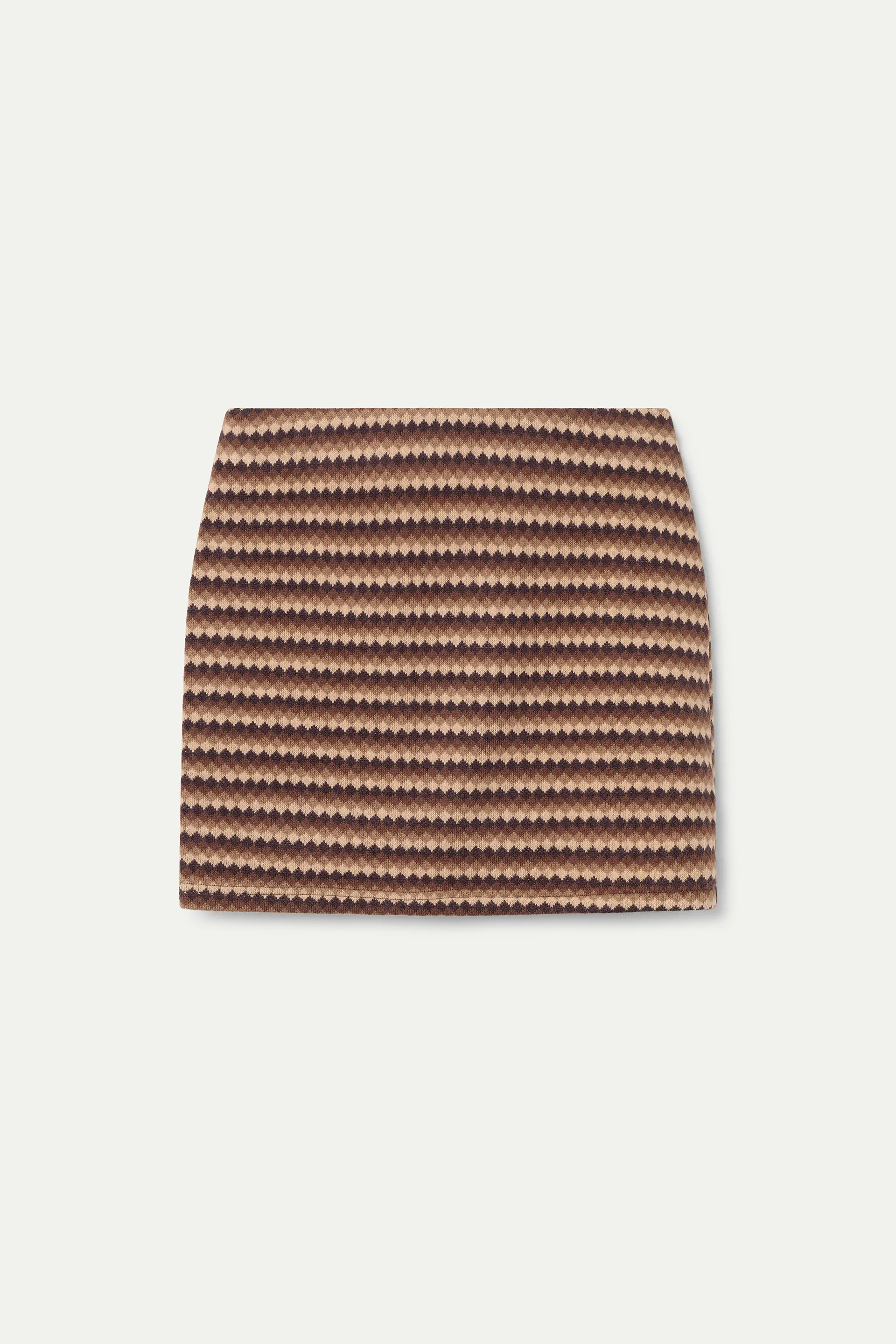 Falda corta geométrica con tejido jersey. Con cintura fija de tiro alto. Goma elástica en la cintura.