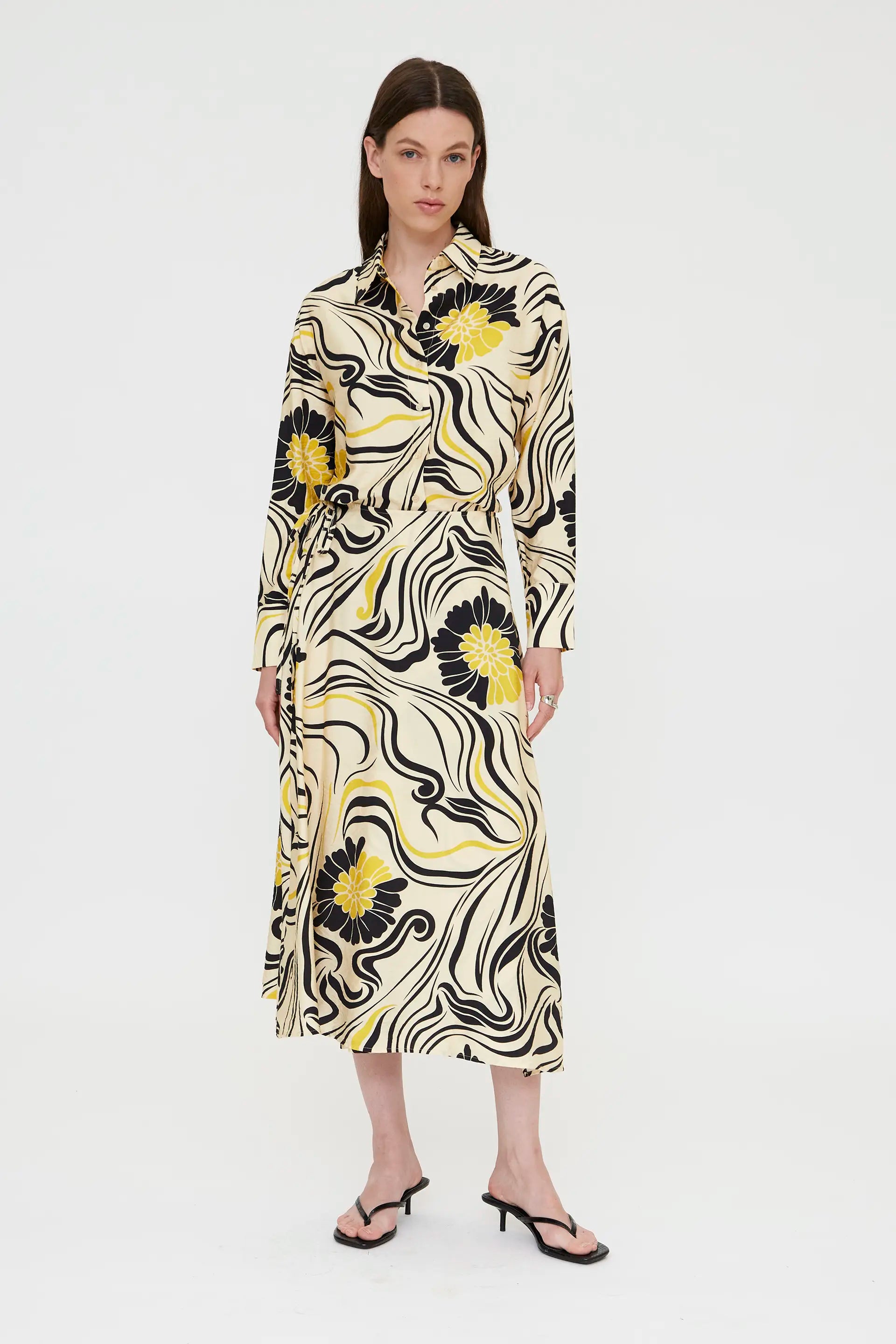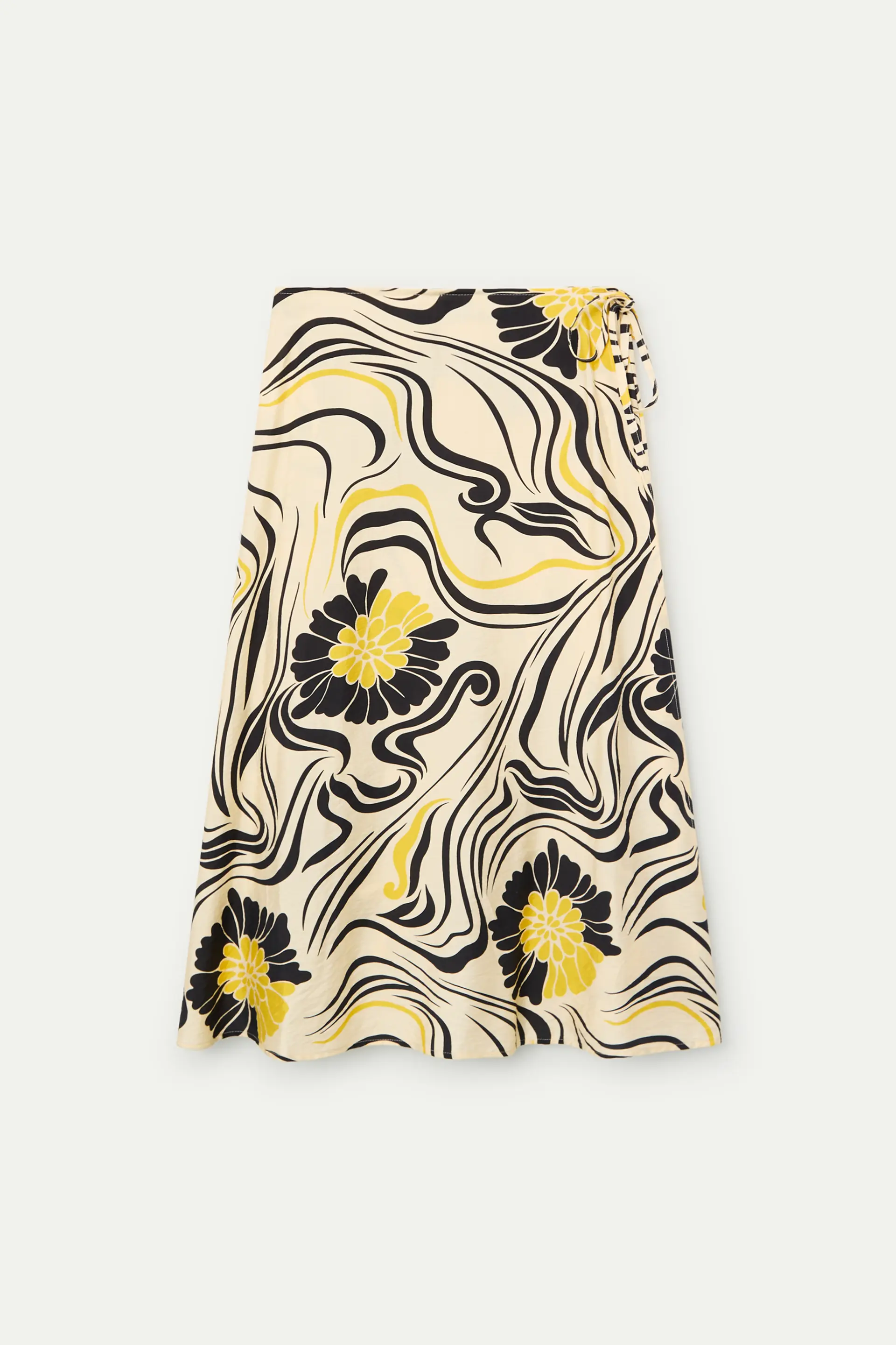 Falda midi de tejido crepé con estampado Praga. Cintura fija de tiro alto. Cierre lateral lazado. La modelo mide 178 cm y lleva la talla S.
