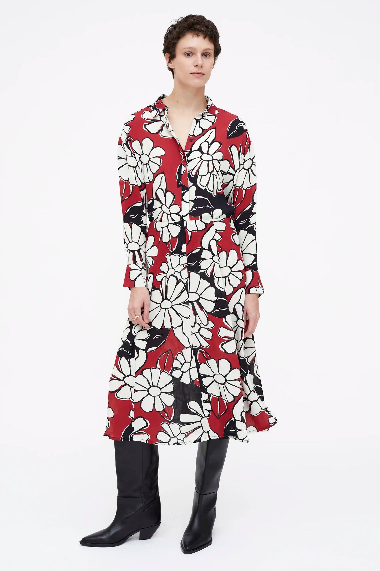 Falda midi con estampado Blooming Sunset. Cintura fija de tiro medio. Cremallera invisible lateral.