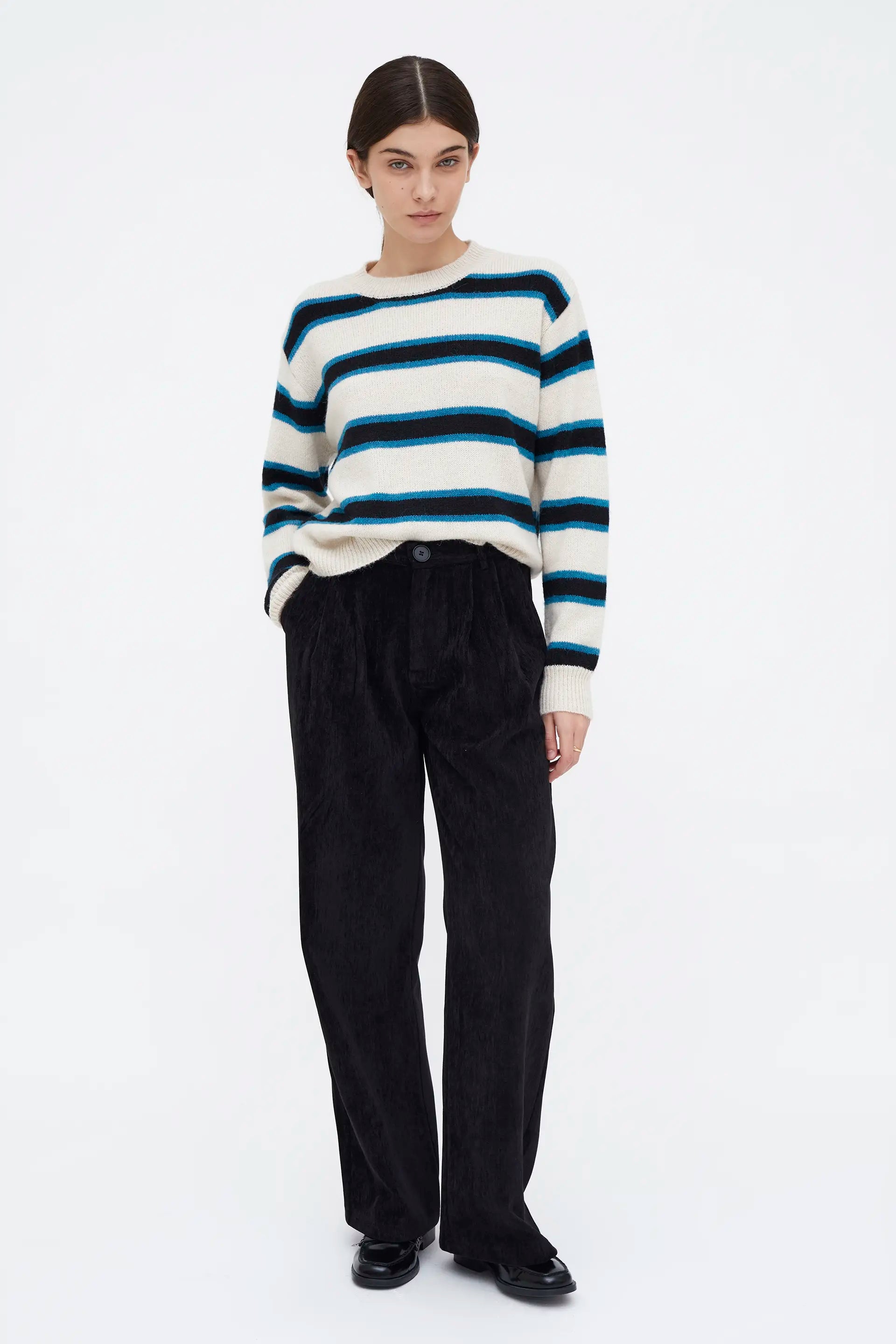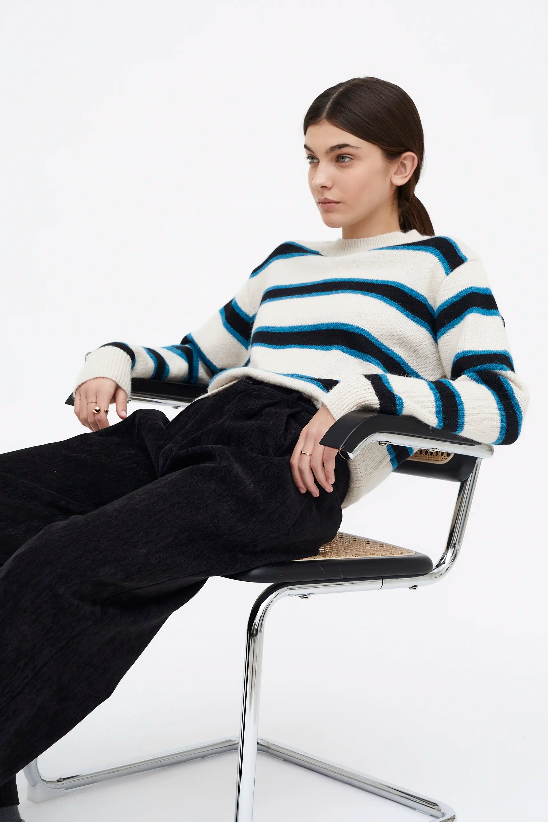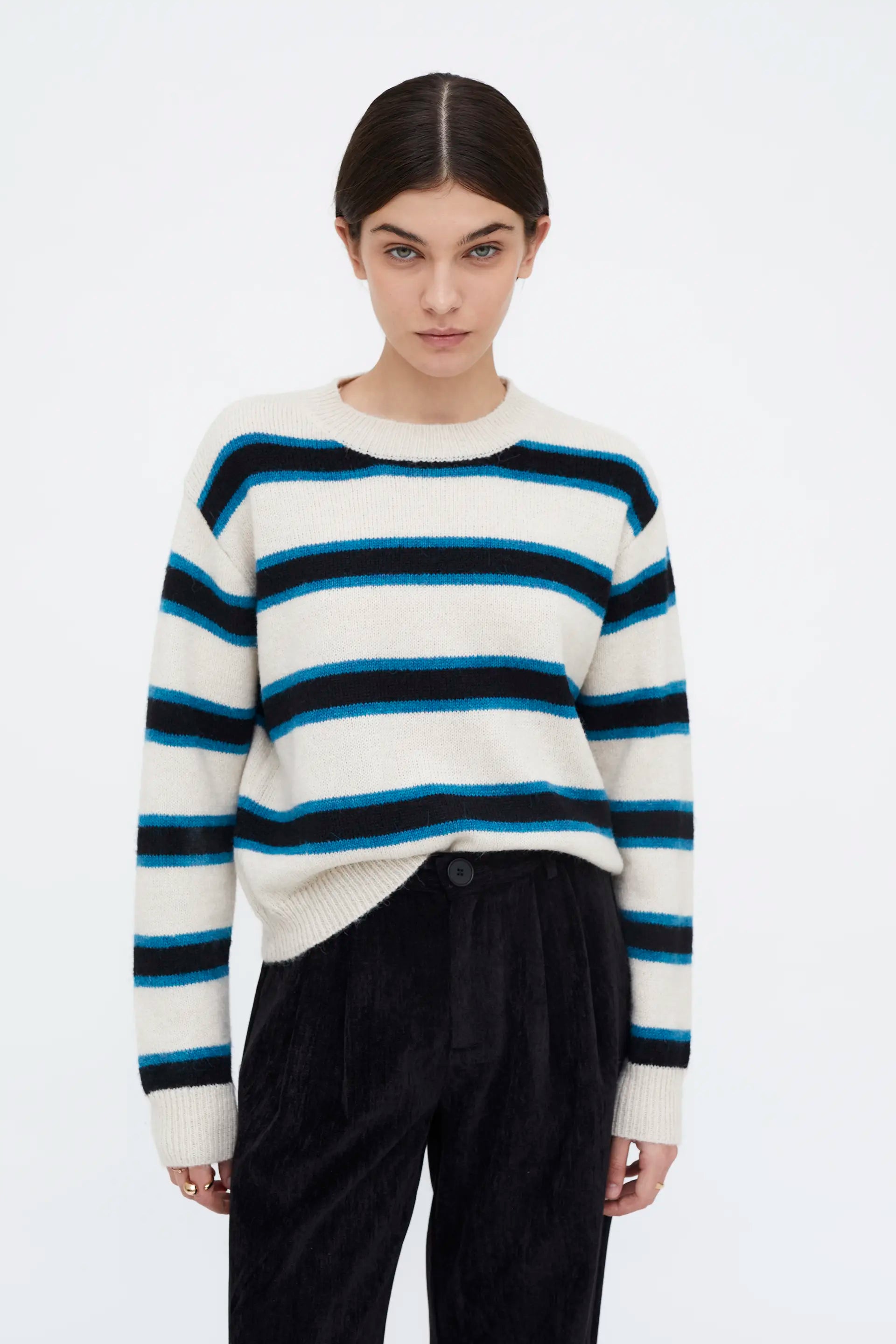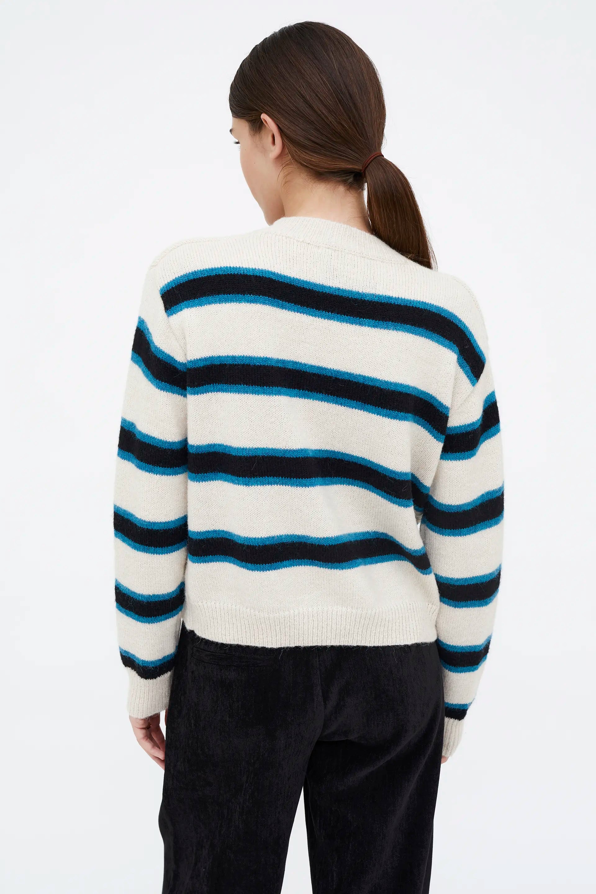 Jersey Jacquard estampado Poker. Con cuello redondo y manga larga con hombro ligeramente caído.