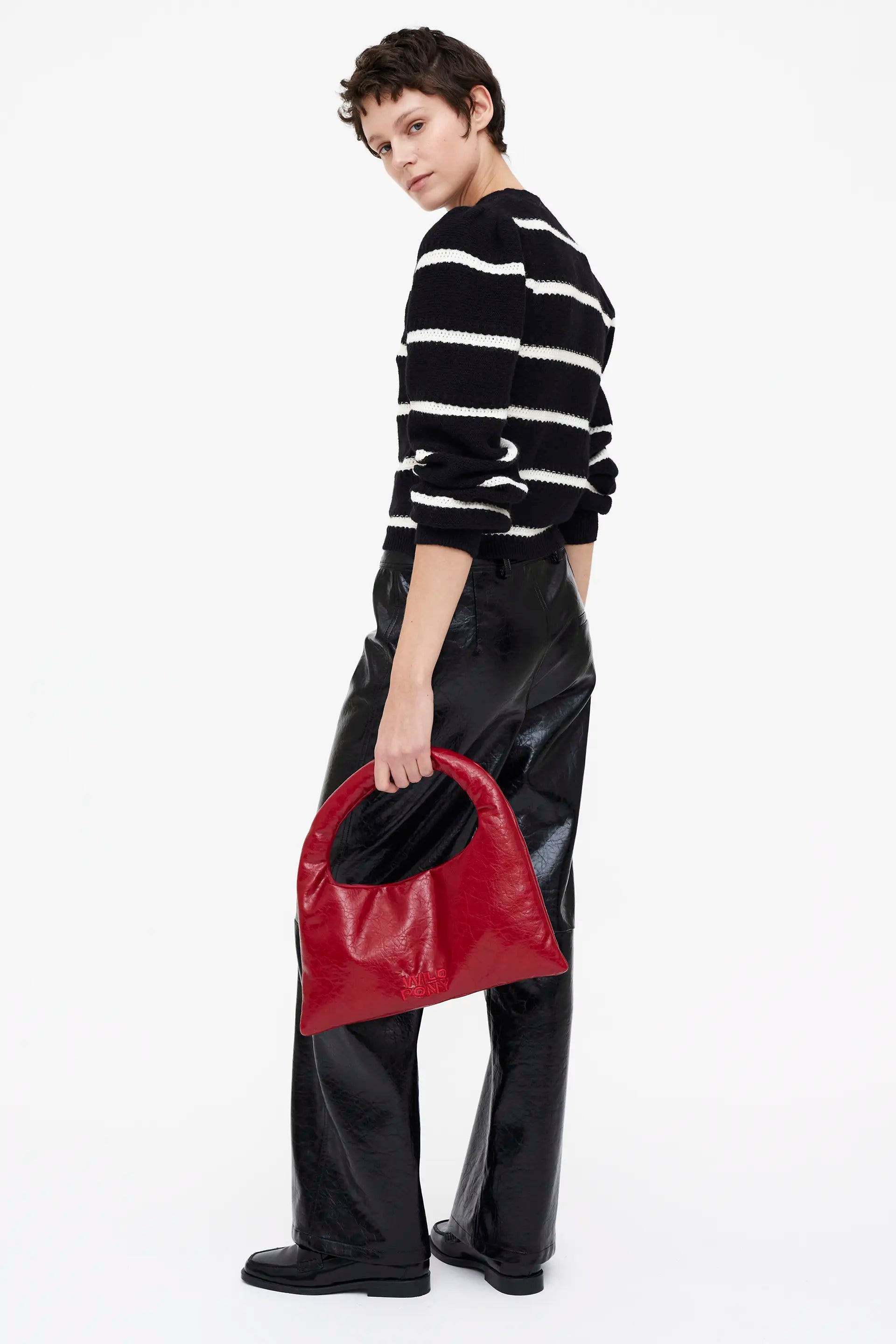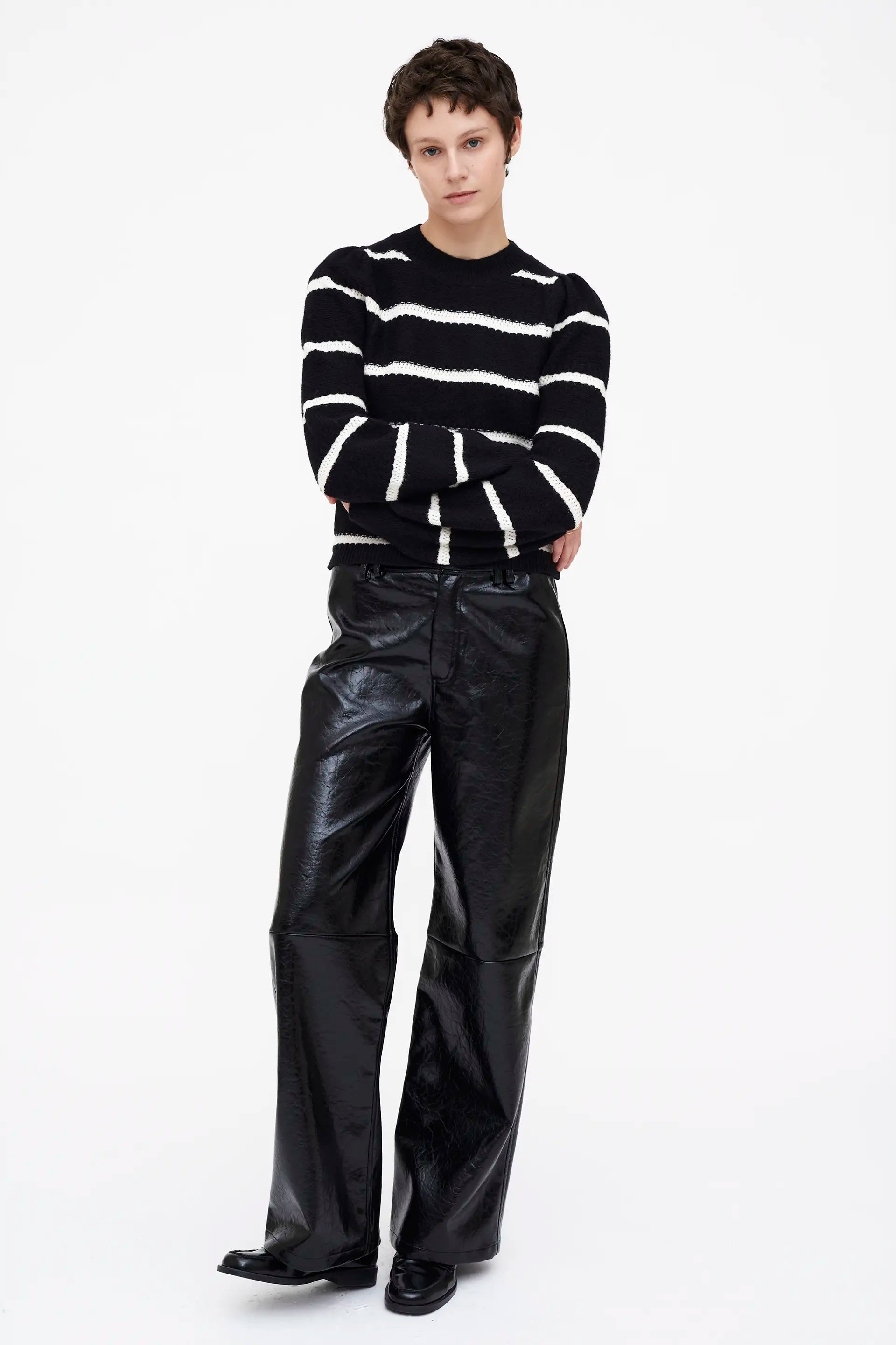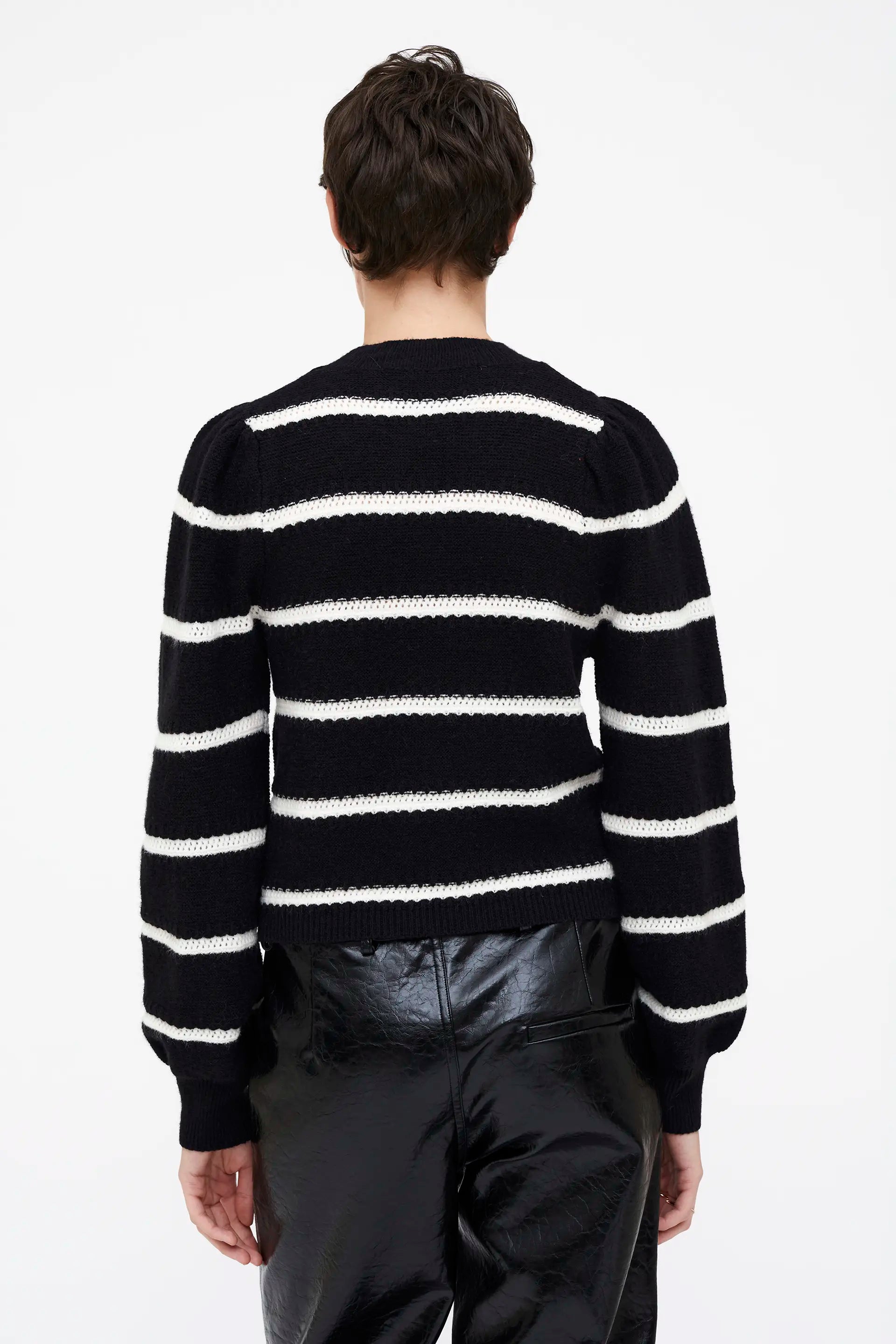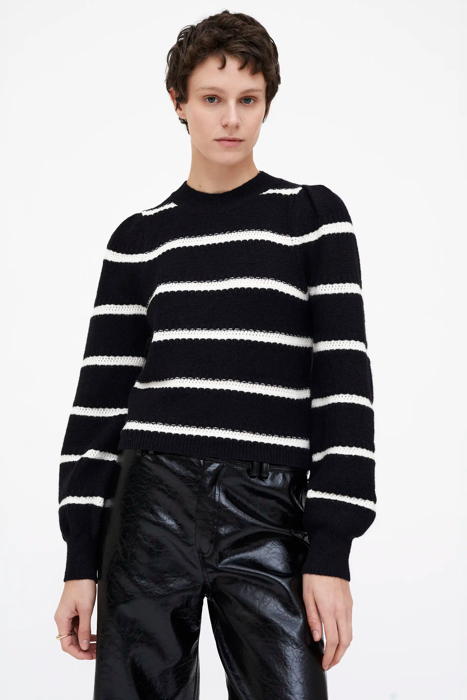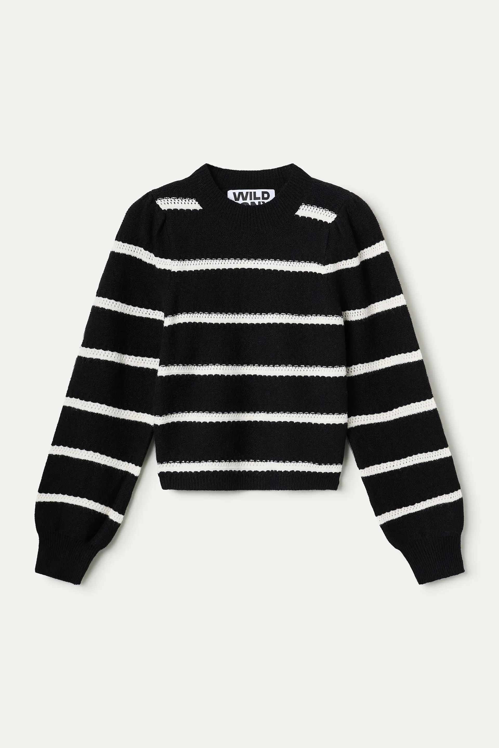 Jersey punto de rayas blanco y negro. Con cuello redondo y manga larga terminada en rib.