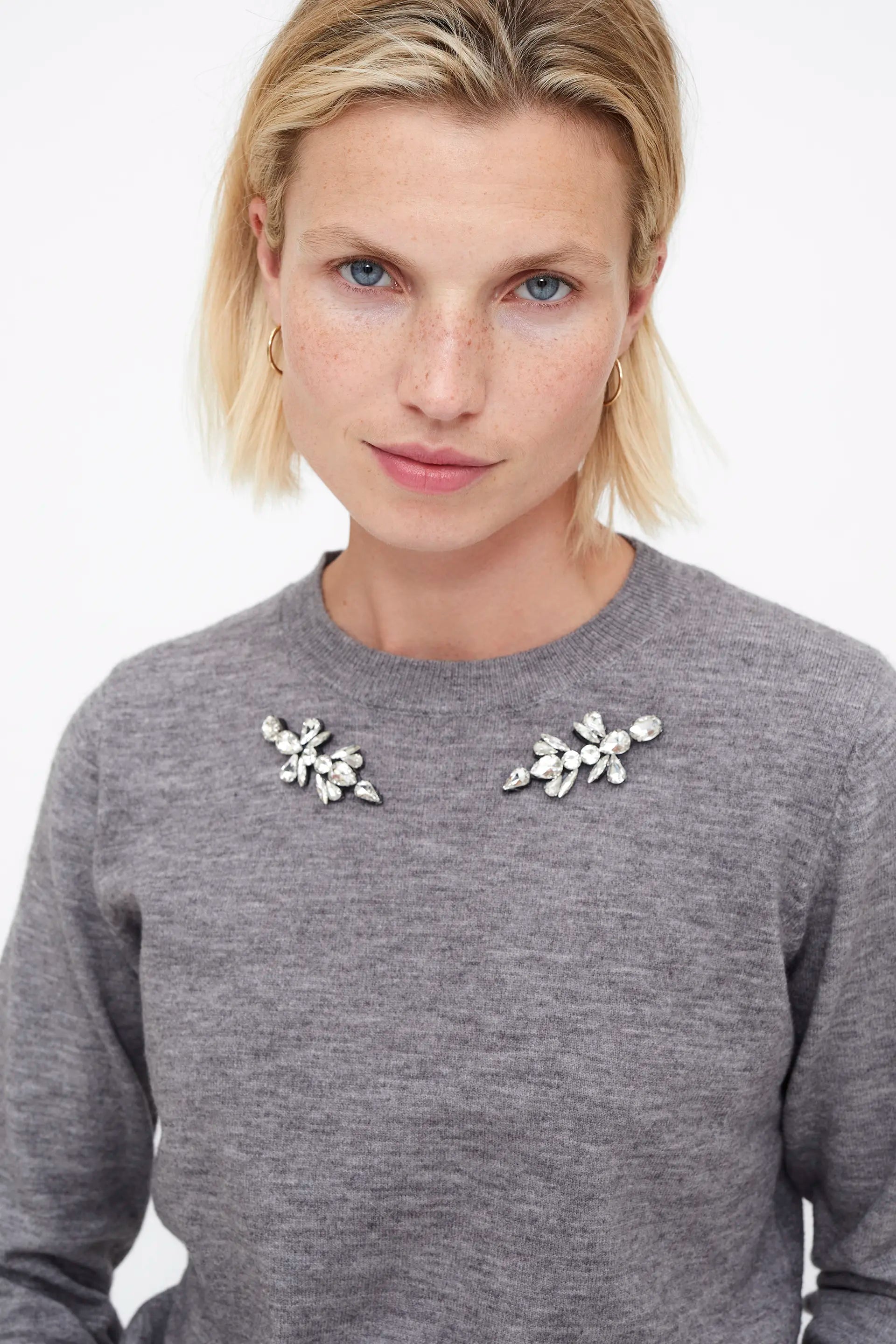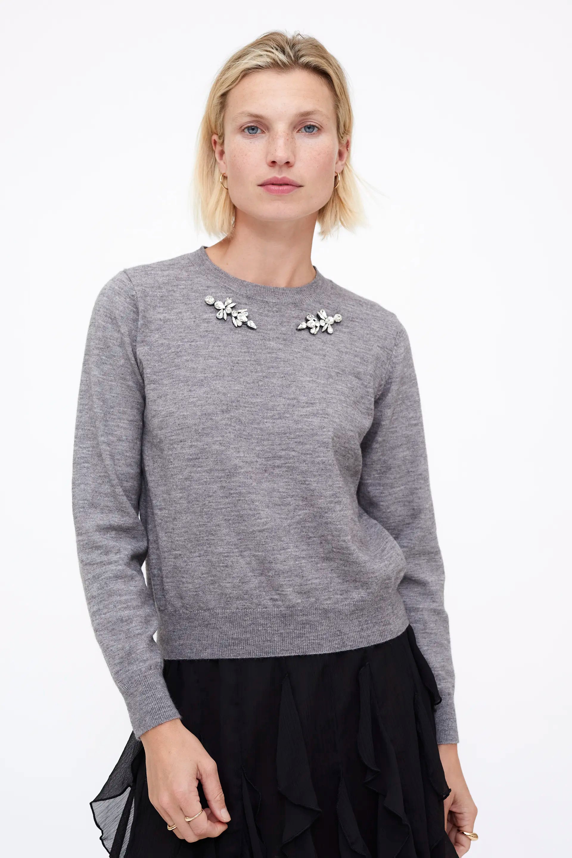 Jersey punto de color gris con aplique joya. Cuello redondo y manga larga con detalles en rib.
