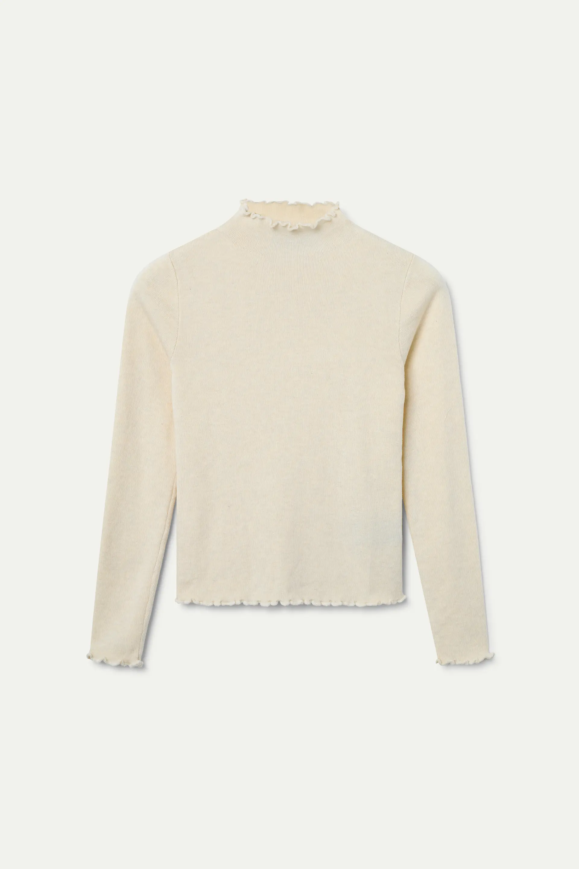 Top punto canalé de color blanco. Con cuello perkins y manga larga.